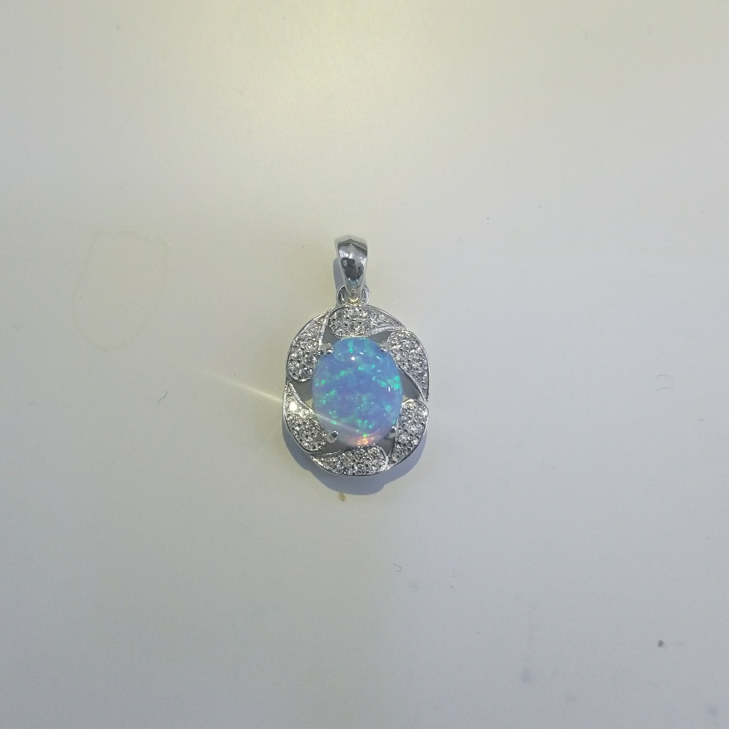 • Silver 925 pendant with cz rhodium plated created oval opal for women gift fashion