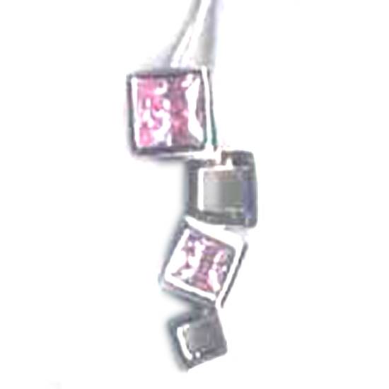 This is a 925 silver pendant decorated with pink cubic zirconia. The drop pendant has four squares in graduated sizes as the dangling, in which two of them are mounted with the pink stones. The stylish and fashionable pendant is perfect for making ladies' necklaces.