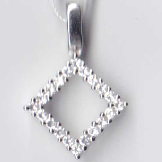 This 925 silver pendant hangs down as a rhombus with a hollow design. The frame is bejeweled with a row of white cubic zirconia stones for continuous twinkle.