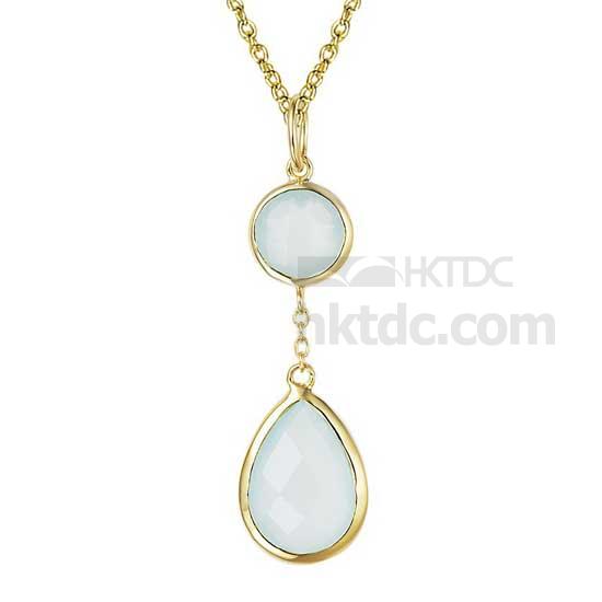 This is a 925 silver pendant that comes with an 18K gold plating finish. It is accented with natural chalcedony gemstones in round and pear shapes. This gorgeous pendant is an ideal addition to complete your jewelry box.