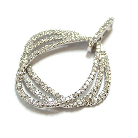 This delightful pendant features three overlapping loops decorated with sparkling cubic zirconia. This beautiful pendant allows the wearer to stand out in any occasion. This well made jewelry also makes a charming gift for ladies.