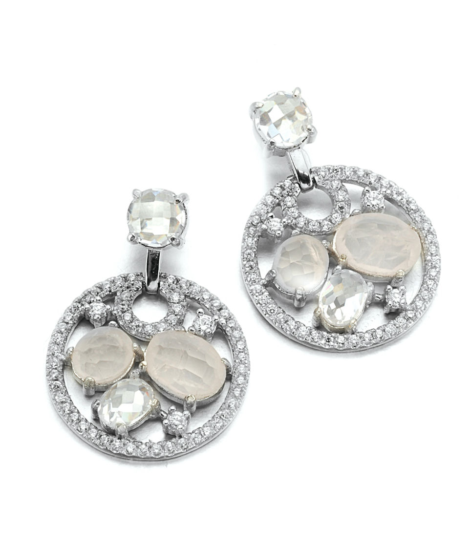 • 925 silver; stone: pink quartz and cubic zirconia plating: rhodium plating; 925 silver earring set with pink quartz and cubic zirconia, the design is nice for ladies to mix and match with different clothing
