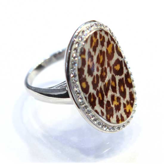 Available here is a ring designed with style in leopard patterns. The ring is made with quality silver, enamel and shimmering Swarovski crystals. This classy-looking ring is a nice piece to spruce up your daily look.
