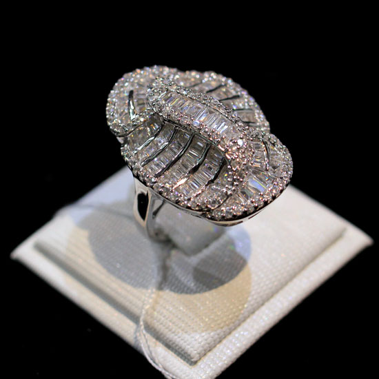 This beautiful sterling silver ring features a charming sparkling design. The modern shape is covered in baguette sparkling stones. The contemporary accessory complements your daily outfits with great personality and character.
