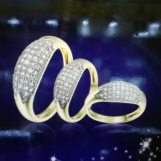 This is a series of stylish finger rings available in different sizes. Each finger ring is finely crafted of 925 sterling silver in a luxurious golden plating finish. Dazzling CZ stones are fully paved on the surface of these finger rings for a decorative touch.