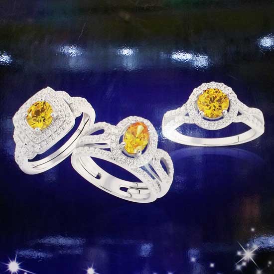 This is a series of finger rings that is available in different styles for wide selection. Each finger ring boasts a 925 silver structure in a highly glossy finish. The large yellow-hue stone centerpiece is fully surrounded by an array of dazzling CZ stones.