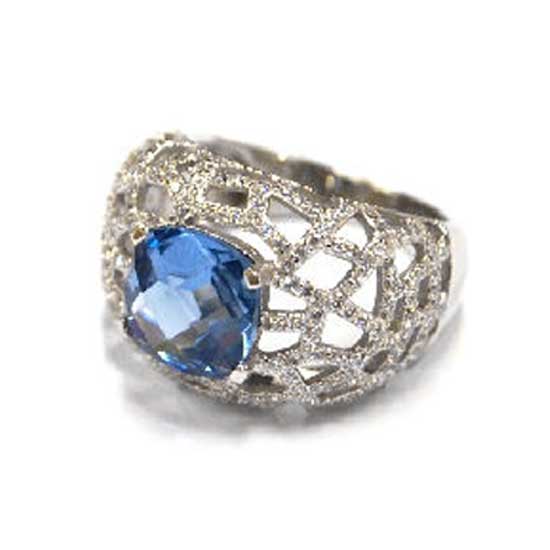 This is a fashionable 925 silver ring that comes with an adorable nest design. It is accented with a large blue-toned centerpiece and allover sparkling cubic zirconia stones. It is suitable to match with evening gowns.