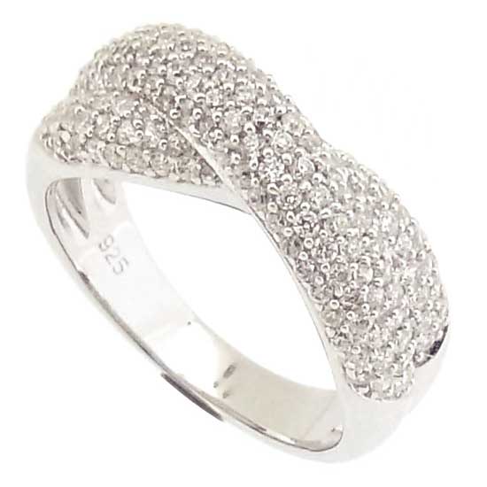 This 925 silver ring features a crossing design for a succinct yet charming style. It is paved with twinkling CZ stones to lure in onlookers’ attention. This refined 925 silver ring is easy to mix and match.