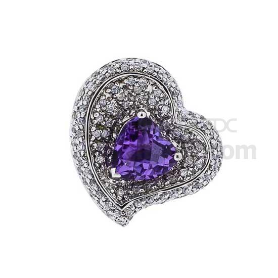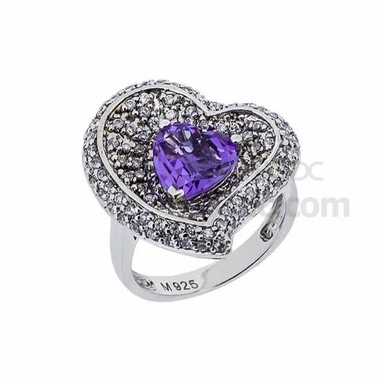 This is a gorgeous finger ring that is finely crafted of 925 sterling silver. The allover dazzling CZ stones are well paved on the elegant sweetheart setting. This finger ring is finished with an amethyst centerpiece for a touch of elegance.