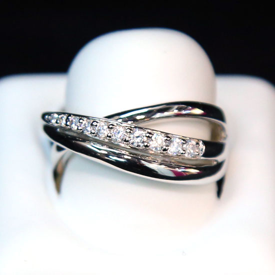 This is a 925 silver ring featuring a criss-cross pattern. The CZ stones are carefully cut and polished for superior luster. It is perfect to match with your casual look.