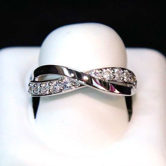 This 925 silver ring comes with a criss-cross pattern. It is studded with clear CZ stones for added shimmer. It is ideal to match with your elegant outfit.