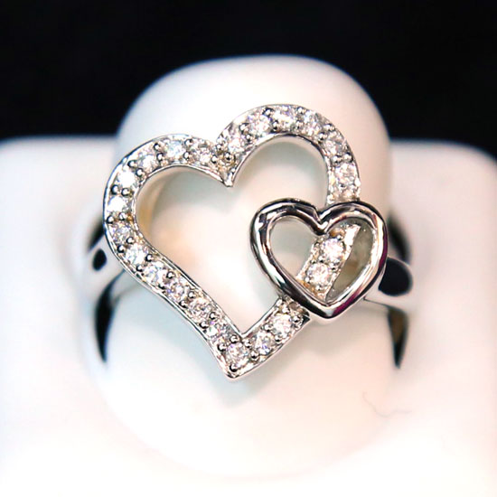 This is a 925 silver ring that boasts an elegant and romantic heart appearance. It is accented with allover CZ stones for a dazzling effect. This well-crafted finger ring shimmers with a high-gloss finish.