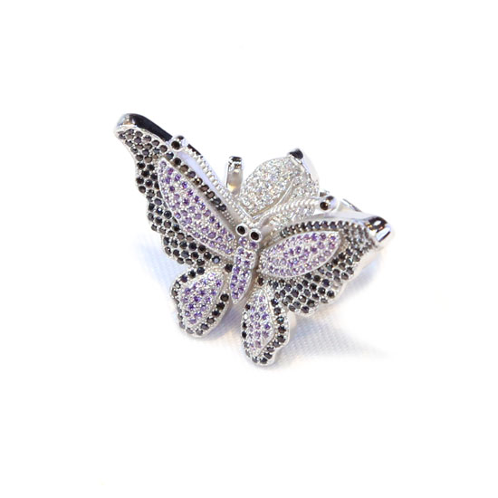 This is a quality 925 silver ring with a stylish and fashionable butterfly design. It is crafted with dazzling CZ stones for an eye-catching look. This stunning ring surely is a great item for adding some glamor to your slender finger.