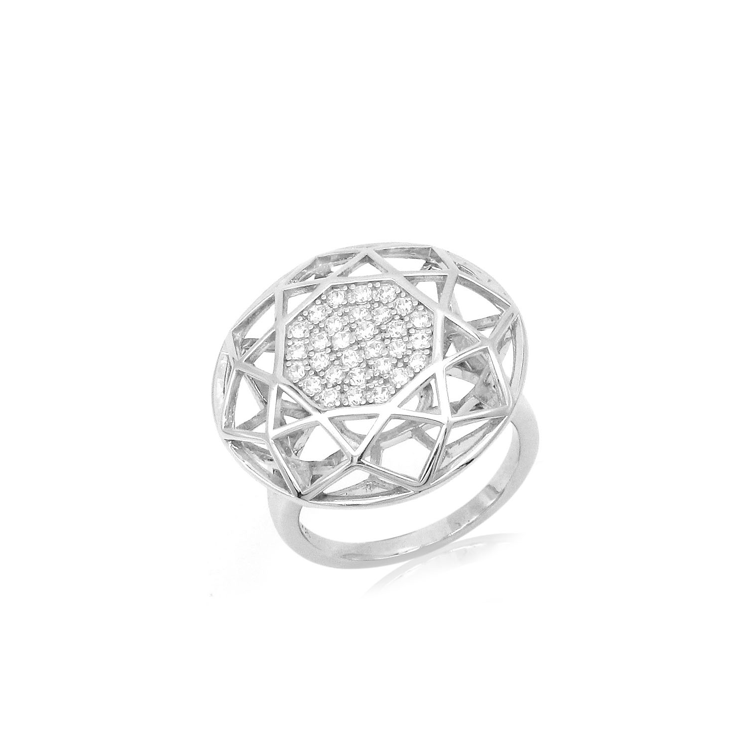 925 silver ring in rhodium plating set with clear CZ