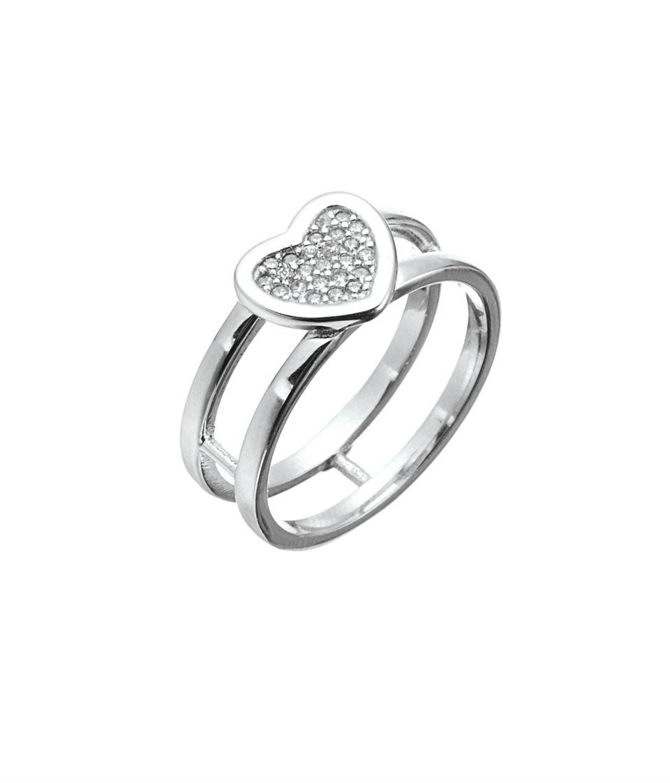 925 Silver; Stone: Cubic Zirconia; Plating: Rhodium Plating; Heart Design Set With Sparkling Cubic Zirconia, This Ring Is Easy To Mix And Match With Different Clothing