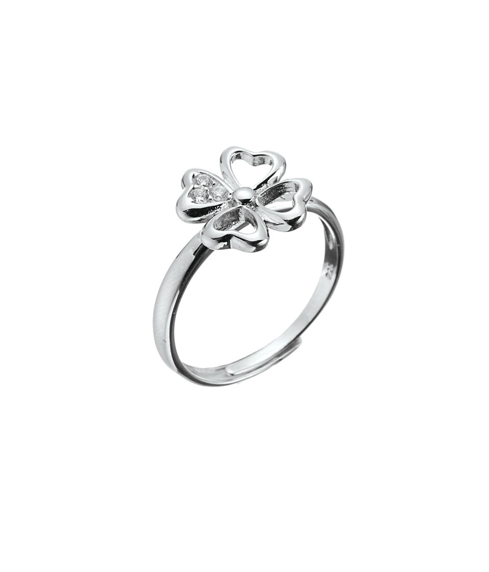 925 Silver; Stone: Cubic Zirconia; Plating: Rhodium Plating; Clover Design Set With Sparkling Cubic Zirconia, This Ring Is A Nice Gift To Young Lady And It Is Easy To Match With Different Types Of Costume