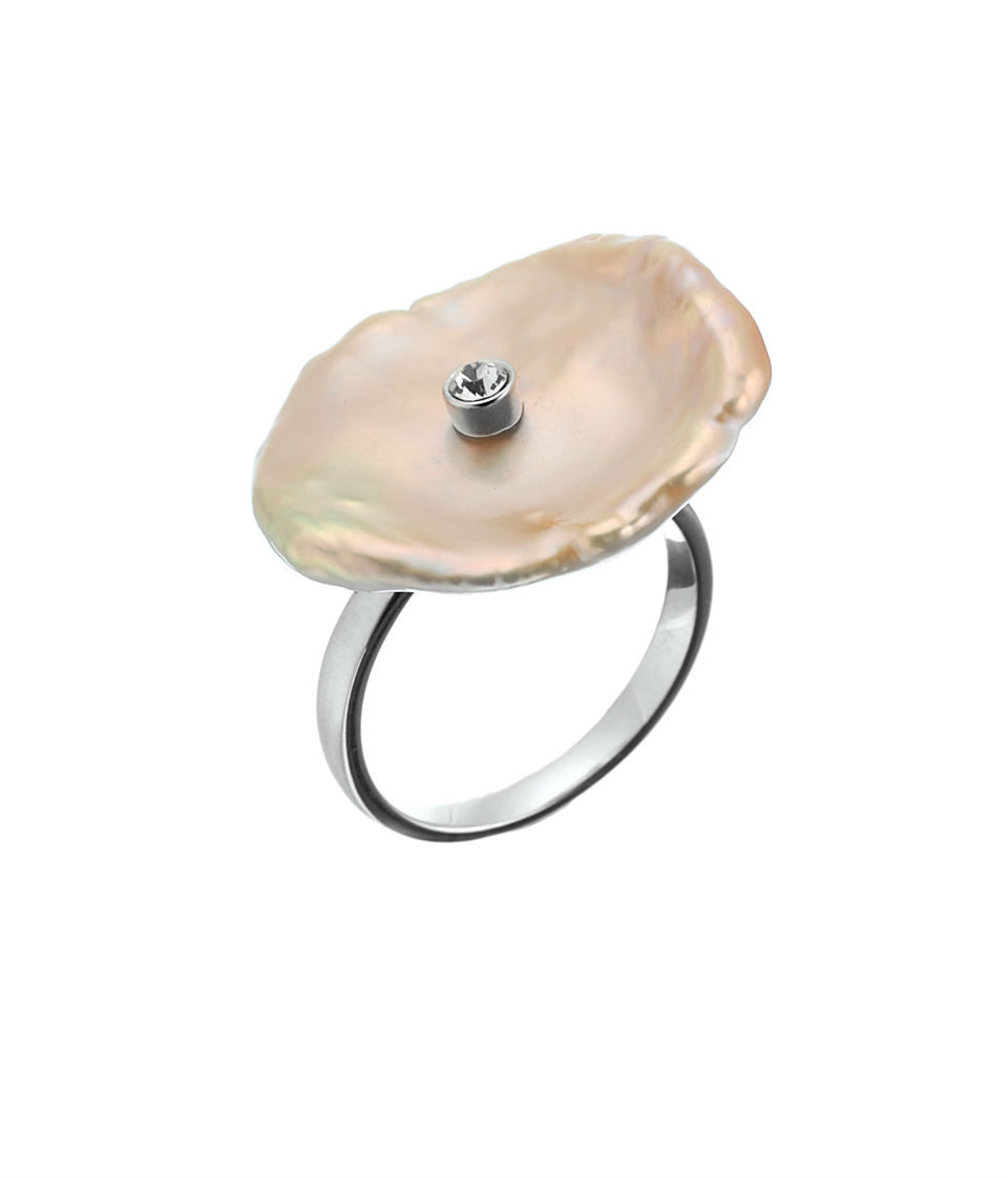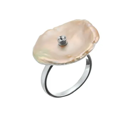 925 Silver; Stone: Keshi Fresh Water Pearl; Cubic Zirconia; Plating: Rhodium Plating; 925 Ring With Keshi Fresh Water Pearl And Set With Cubic Zirconia. It Shows Unique And Elegant Style