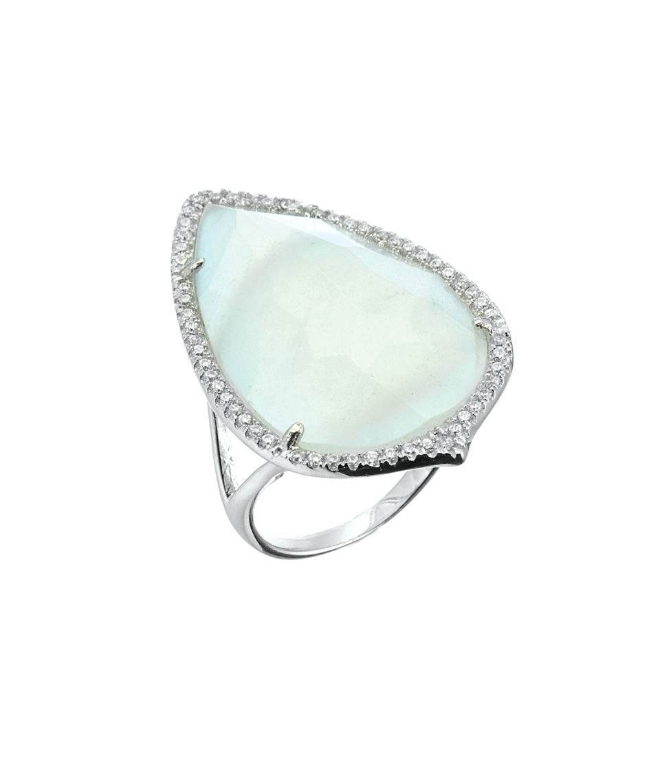 925 Silver; Stone: Amazonite And Cubic Zirconia; Plating: Rhodium Plating; 925 Silver Ring Set With Amazonite And Cubic Zirocnia Around. It Shows Elegent And Luxury. This Ring Is Easy To Match With Different Types Of Night Gowns