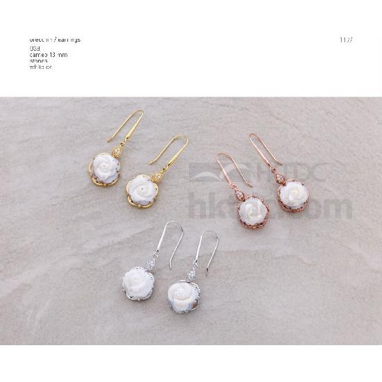 Fine Jewelry 925 Silver Rose Flower Cameo Earrings Made in Italy