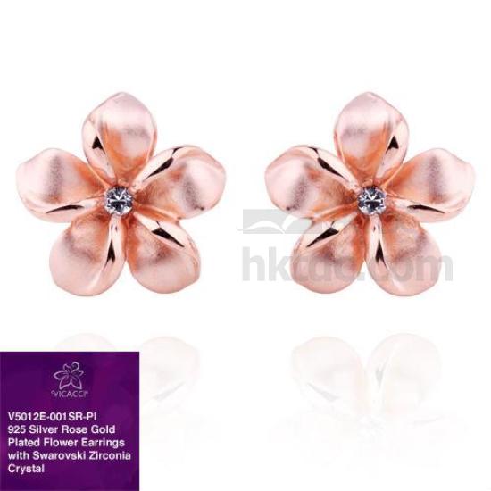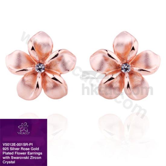 925 Silver Rose Gold Plated Flower Earrings with Swarovski Zirconia Crystal