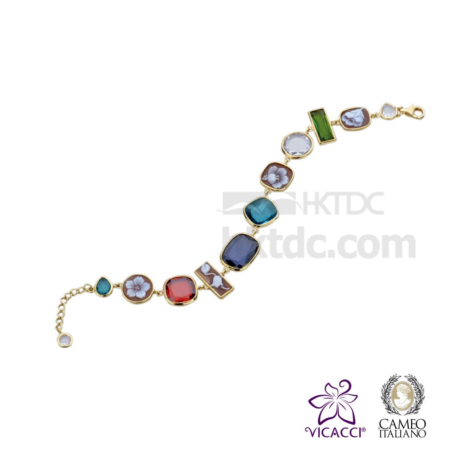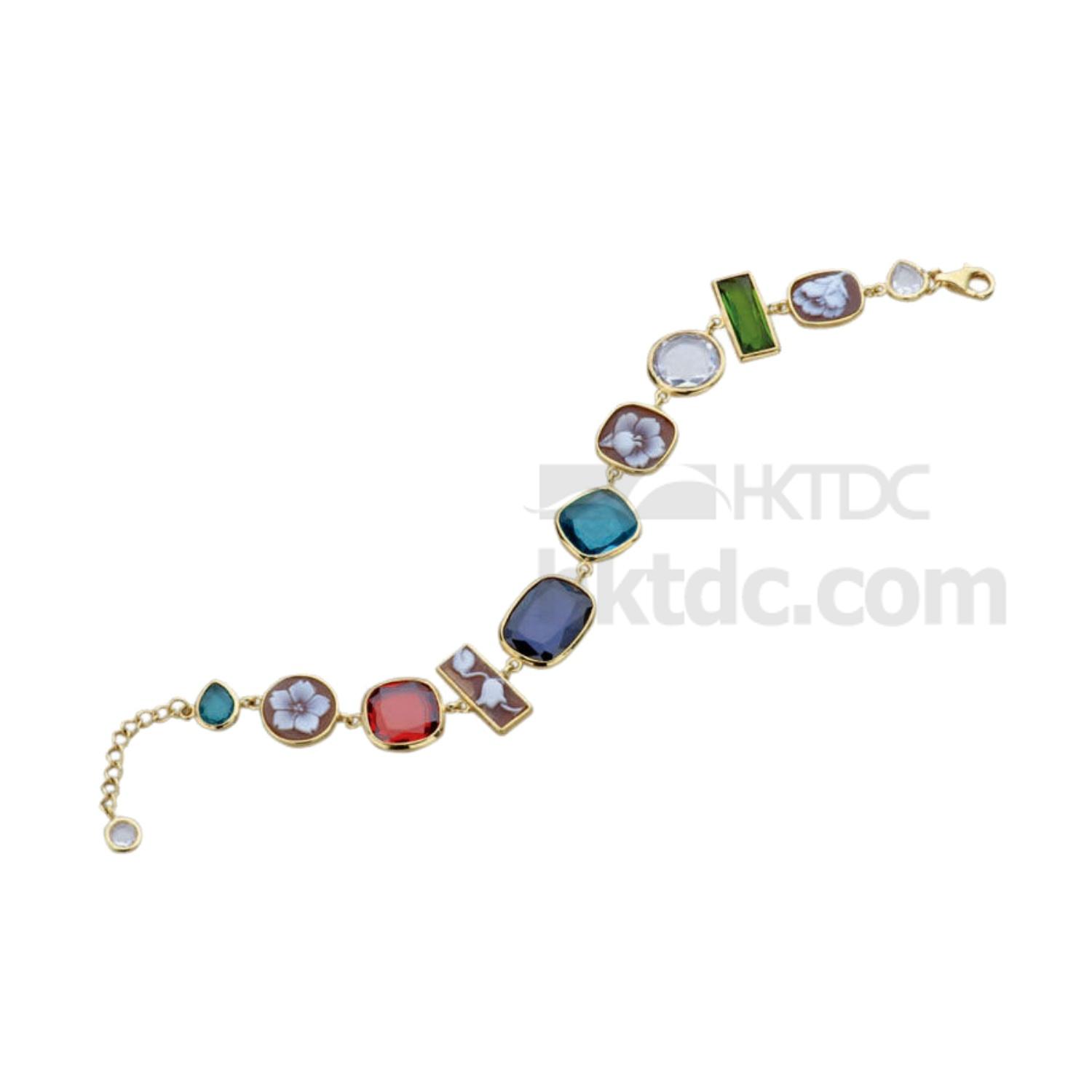 Resembling a hidden treasure from the fairytale woods, the stunning piece boasts to add a dreamy touch to your daily ensemble with a fabulous assemblage of scintillating jewels and lively flower cameos. Chained up accordingly over a 18K gold plated sterling silver bracelet, the exquisite piece promises to lie gently over your wrist with a lobster clasp.