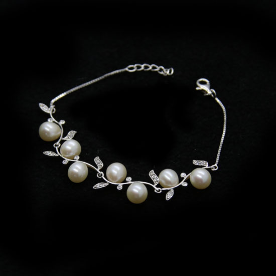 This is an elegant bracelet that is made of 925 sterling silver. The well-organized freshwater pearls add a touch of style to the whole piece. This chic bracelet is an ideal choice for modern ladies.