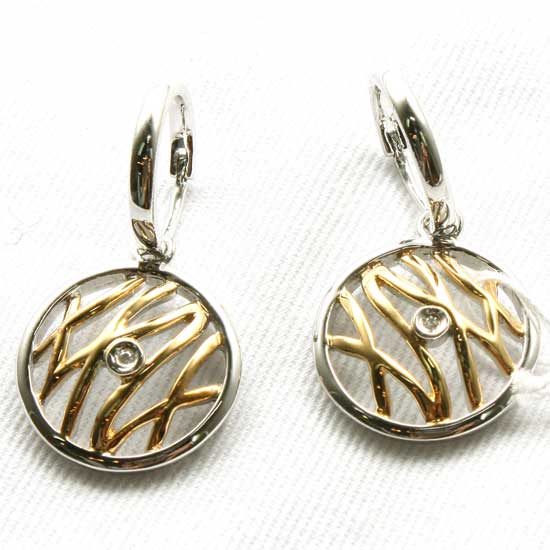 Photographed is a pair of earrings made of 925 sterling silver. The earrings feature two round-shaped ornaments, which are finished with splendid gold-plated cutout details. These earrings are perfect to complement your grand-style outfits.