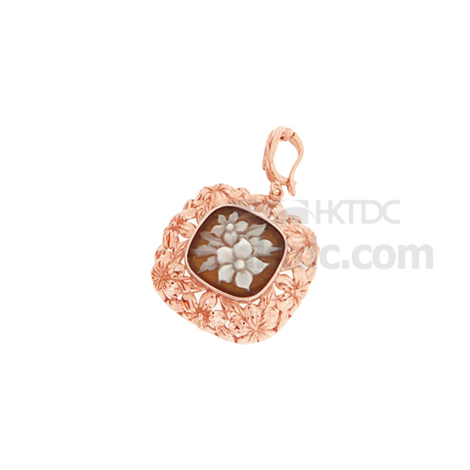 Usher in the warm cheer of spring with this ravishing pendant. The Italian masterpiece boasts a blissful spring symphony with an enchanting row of garden-fresh flower embellishments wreathed along the square cameo sculpture to echo the delicate bloom carvings. Pair it up with a 925 sterling silver neck chain and it shall flaunt a perfect match with your floaty French blouse.