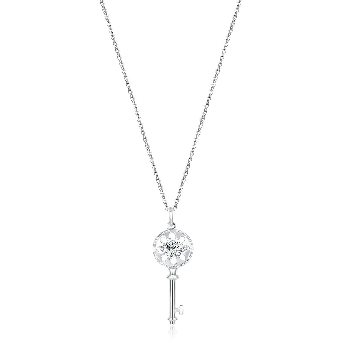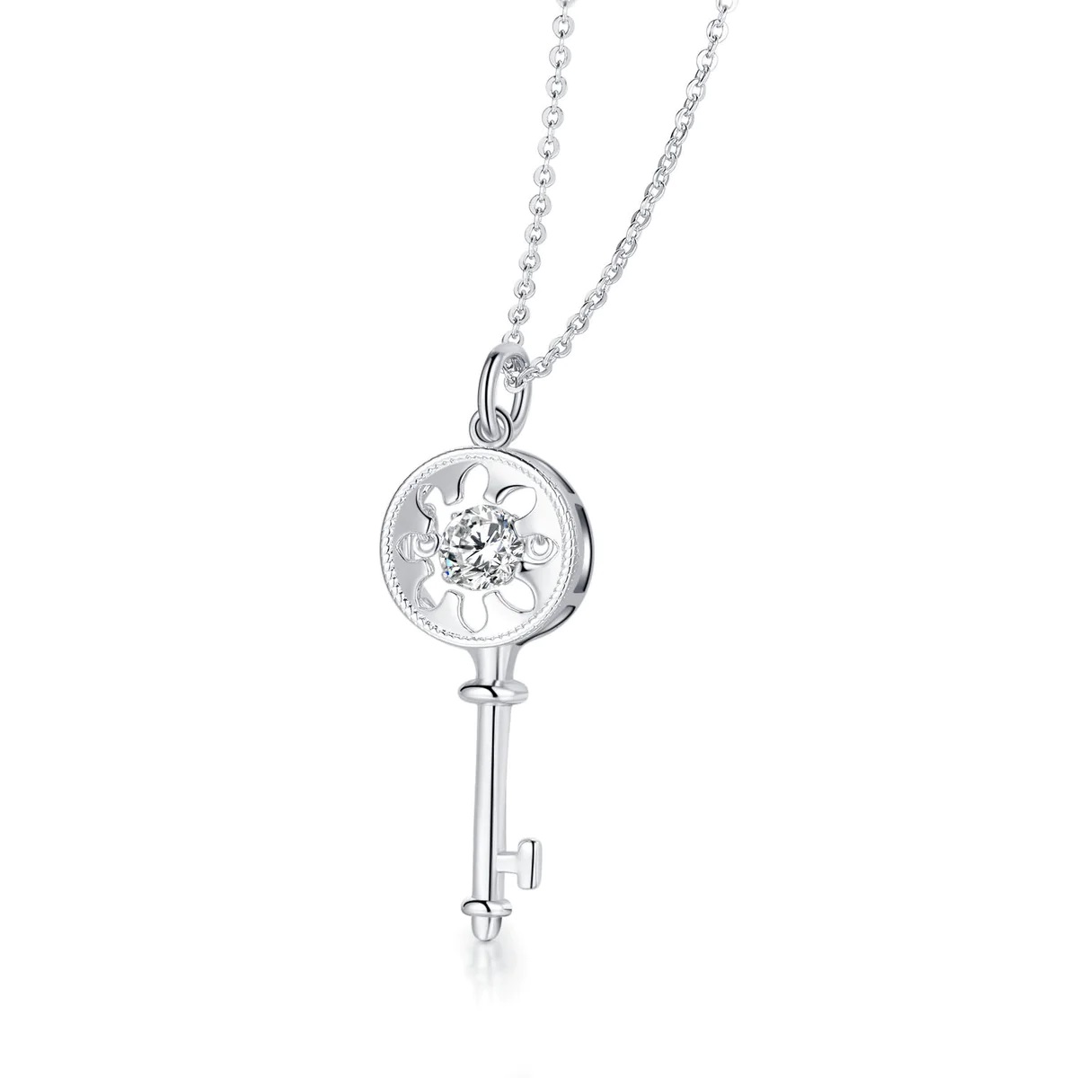 925 Sterling Silver Heart Lucky Key Core Necklace