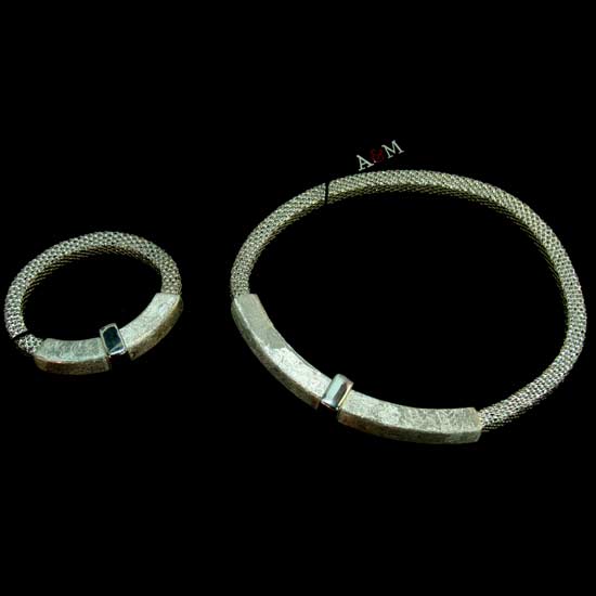 The jewelry set includes a necklace and a bangle in a stylish design. Each item features a 925 sterling silver construction highlighted by solid and meshed details. This jewelry set makes a great item to enhance your fine jewelry collection.