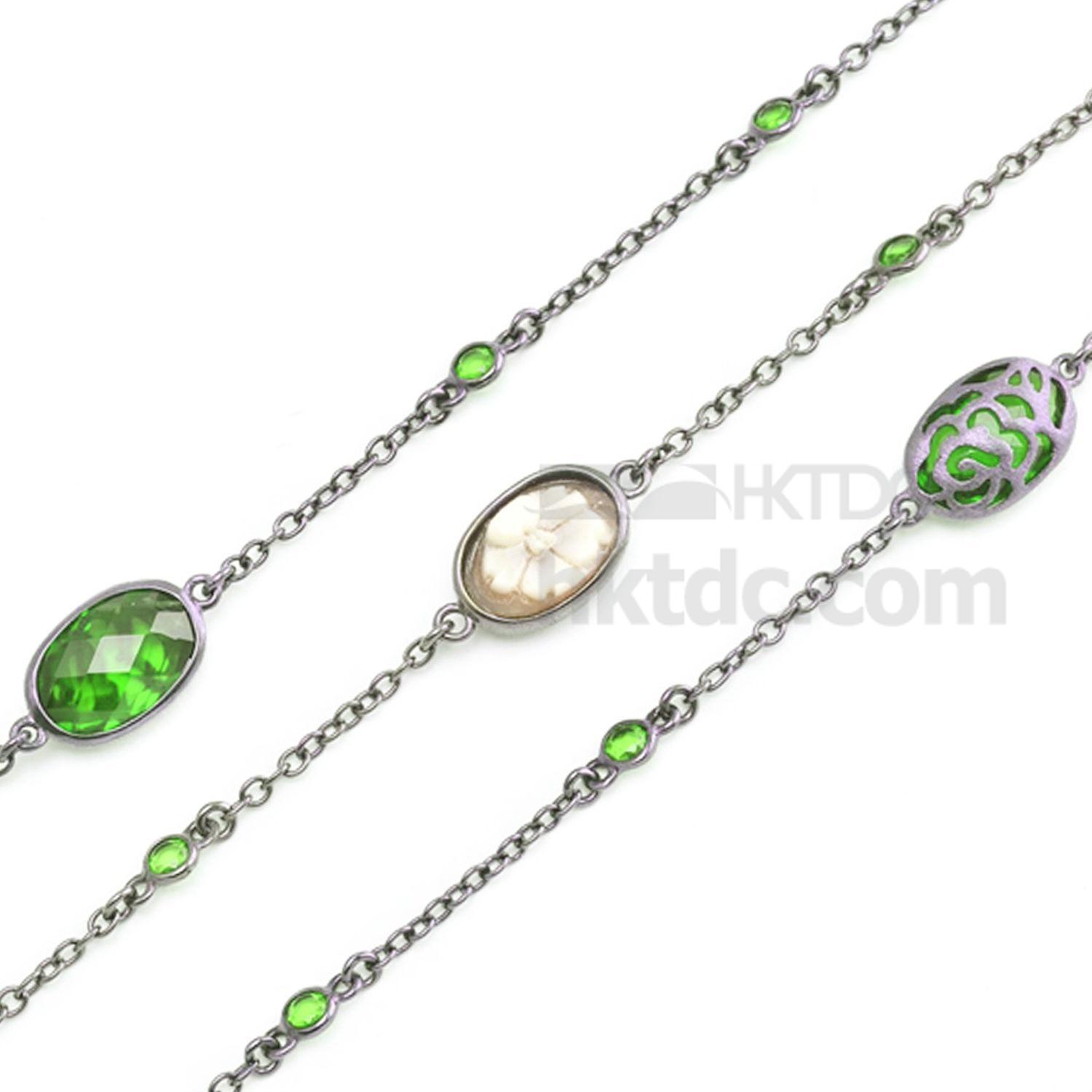 • Shimmering floral and openwork beads installed precisely along the chain.