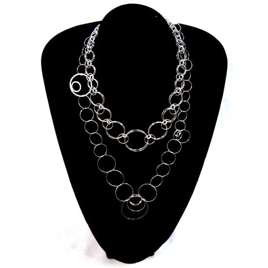 Shown here is a stylish two-strand necklace that flaunts modernistic elegance. The excellent necklace is constructed with numerous thin silver rings, making it a truly unique necklace. This simply is the ideal gift for sophisticated ladies.