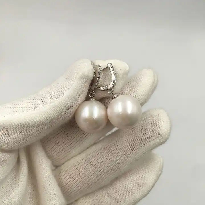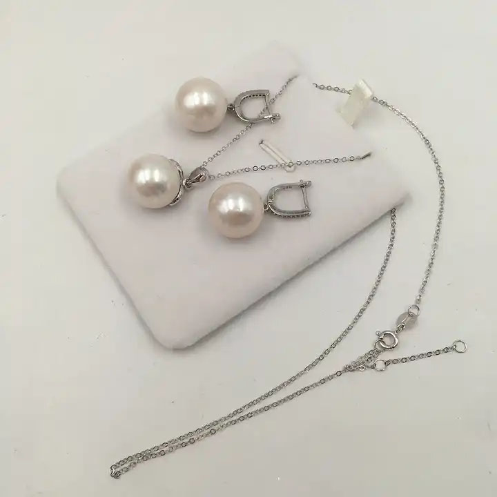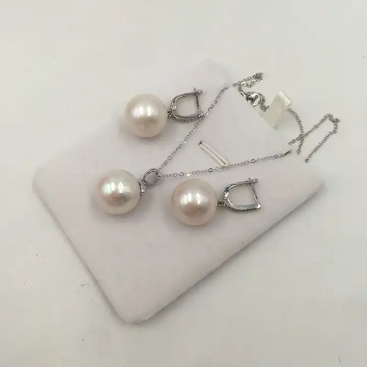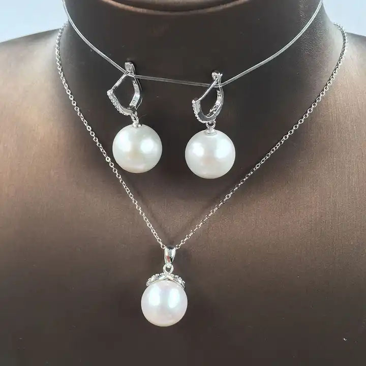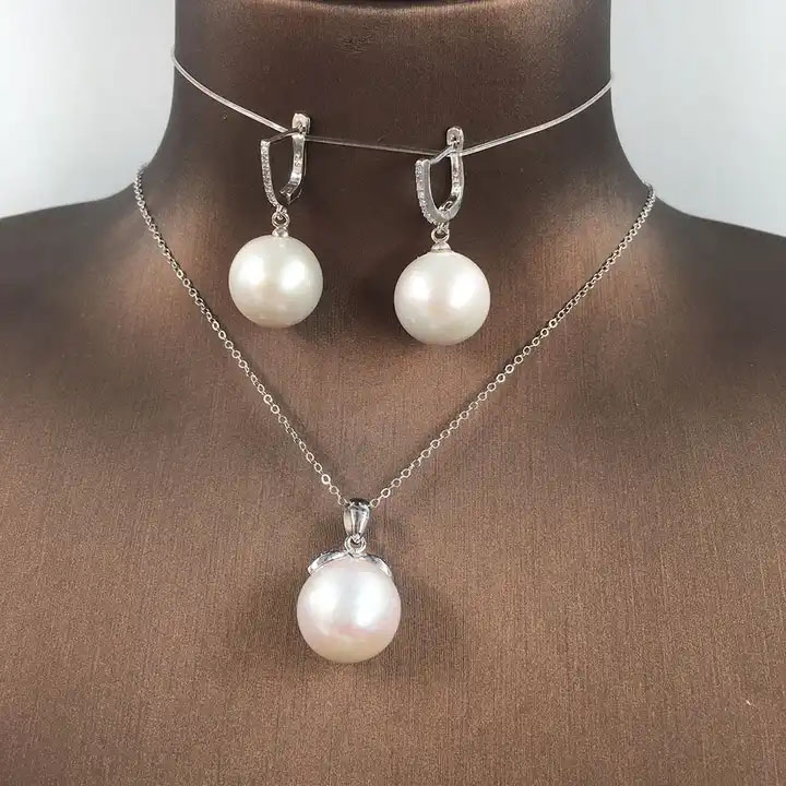 925 silver jewelry set ,14-16 MM Big perfect ROUND nature freshwater pearl pendant necklace and 925 earring