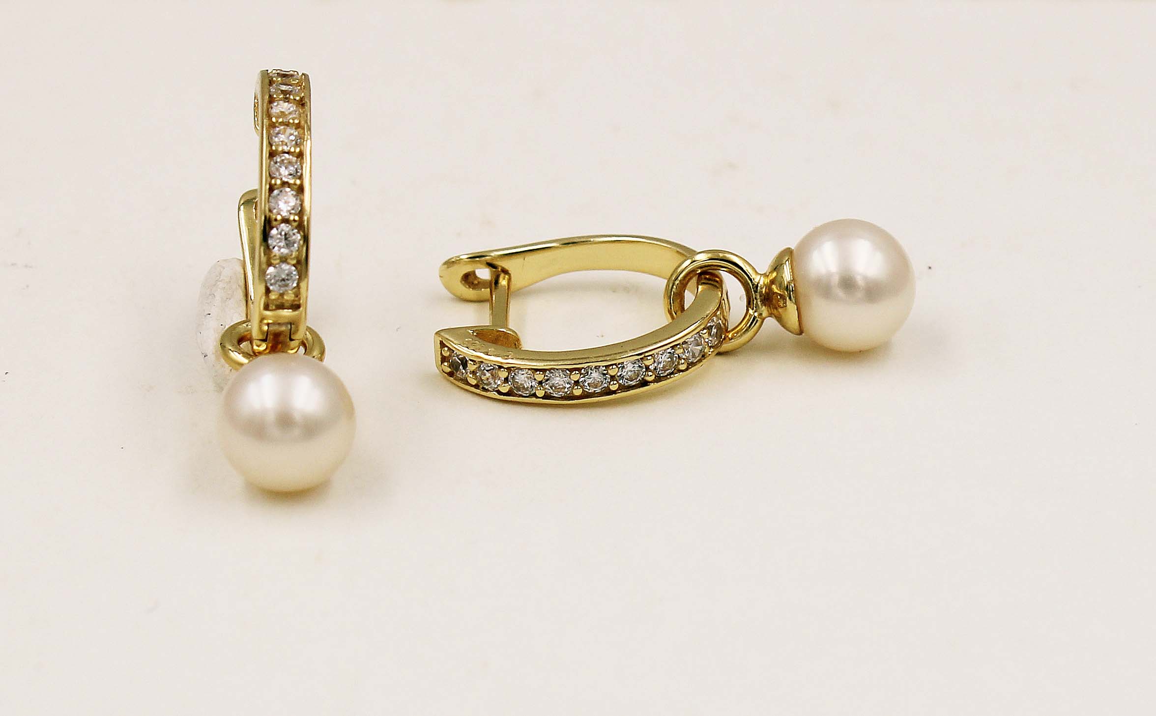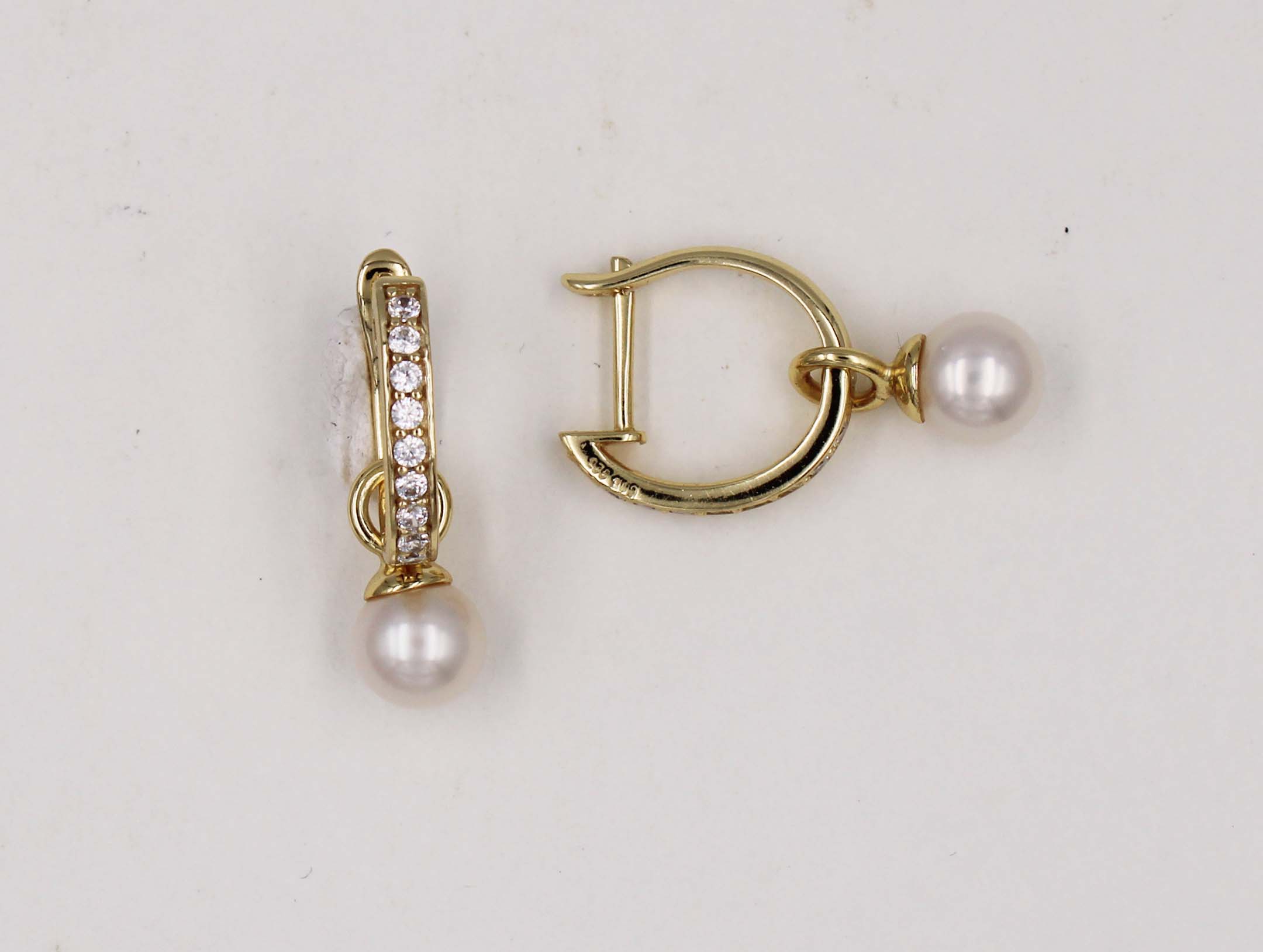 925 sterling silver hook earring, each pr. has 18pc. of 1mm white cz and 1pr of 6.5-7.0mm Chinese round fresh water pearl, white color.