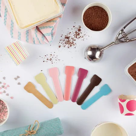 Upgrade to a greener alternative with our 95mm Ice Cream Paper Spoon:
