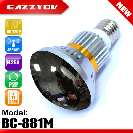 This IP camera bulb features a high-definition camera covered a mirror cover to prevent people seeing through a camera len inside. It is invisble at night because there is no infra-red light come out and still have night vision feature. The integrated IP camera records a video automatically if motion is detected. This is a versatile monitoring device ideal for monitoring your home or shop.