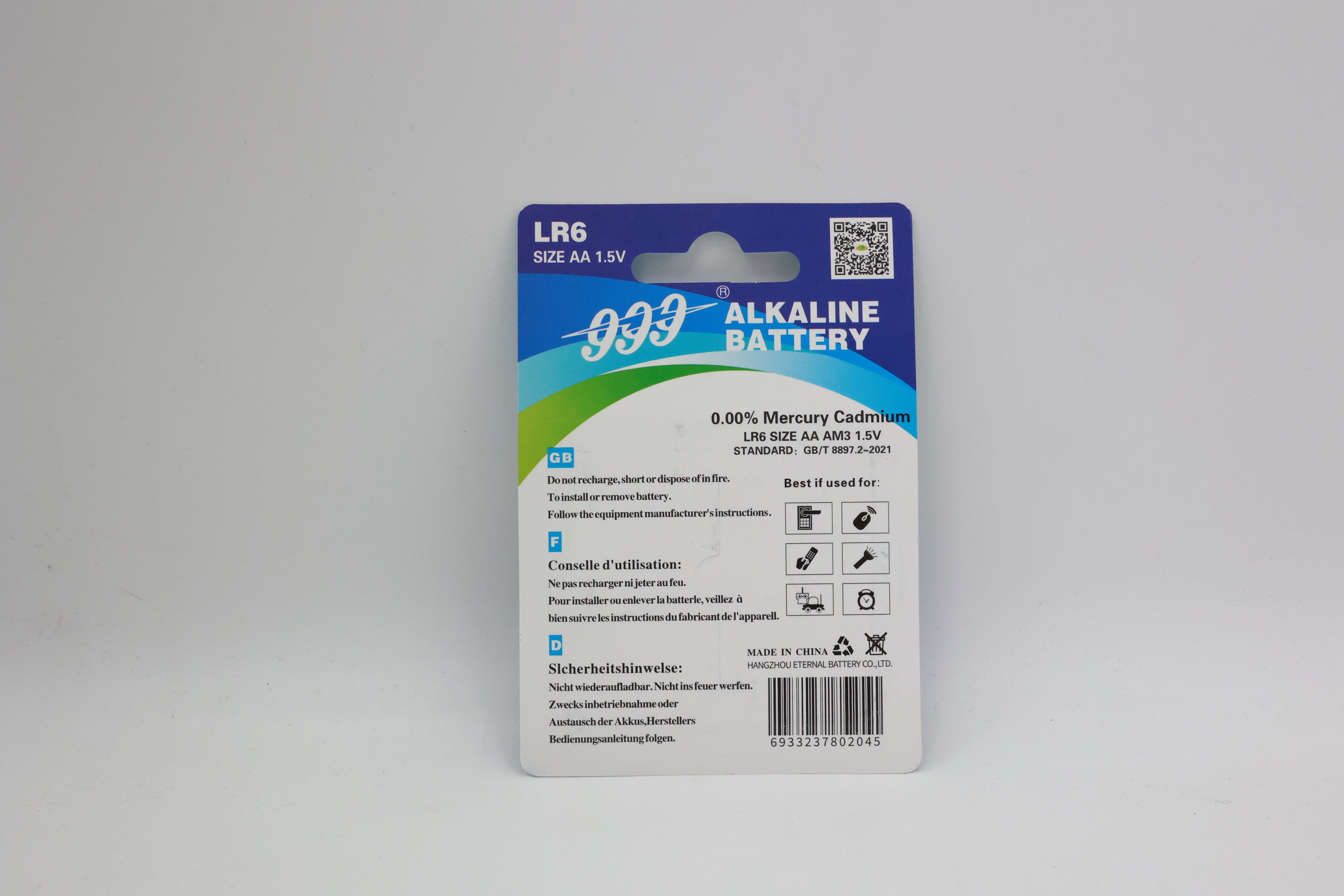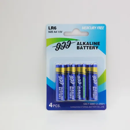 This 999 alkaline battery is packaged in a blue aluminum foil. Its minimum discharge time is up to 410 minutes. It is mercury-free and cadmium-free, and is safe and environmentally friendly. The battery has a long life and is suitable for various household appliances such as children's toys and remote controls. It supports customized packaging and can be packed in blister cards. The factory has strong capabilities and large production volume, with high product quality.