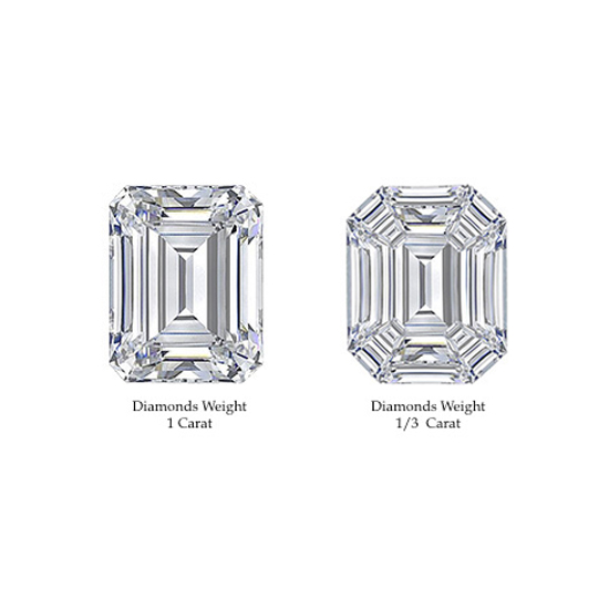 Here you can compare 1ct emerald cut diamonds look same as 9pieces emerald cut diamonds but 9 pieces diamonds weight is only 0.30ct but out look for the both diamonds is same.