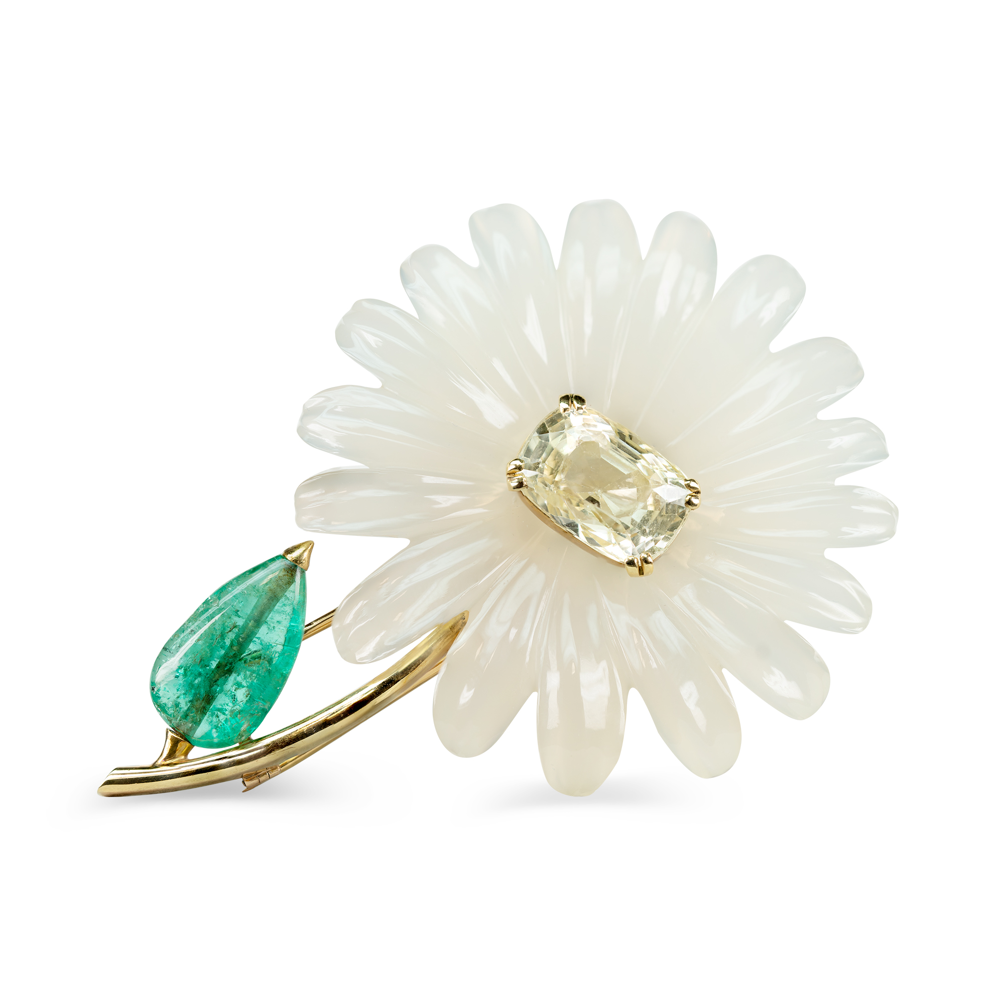 A 18k yellow gold calcedony, yellow sapphire & emerald brooch, Suzanne Belperron