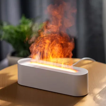 Simulated Flame Lamp Design: Creative flame effect light combined with fine mist creates a cozy, fireplace-like atmosphere for relaxation and decoration.