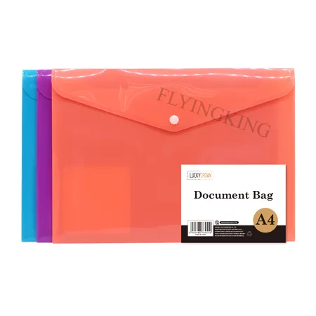 • Transparent document envelopes with snap button and Label Pocket perfect for  A4 size paper and other small items storage, Unique label pocket design helps classify and identify documents conveniently