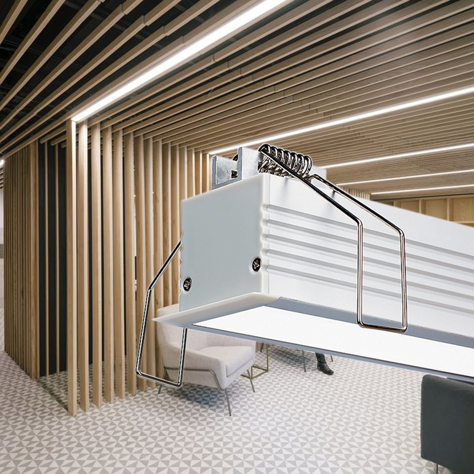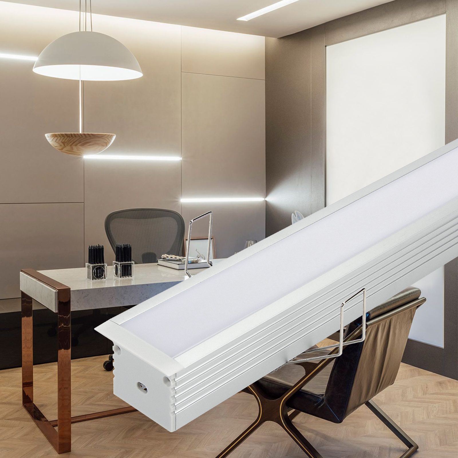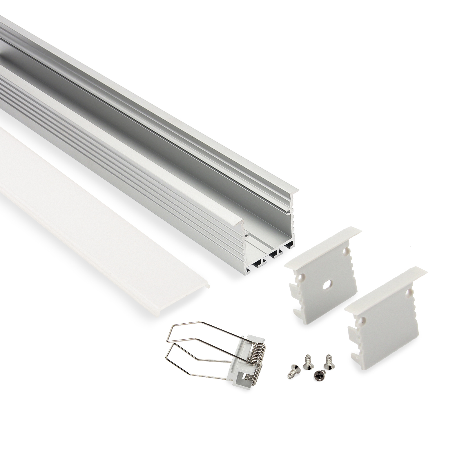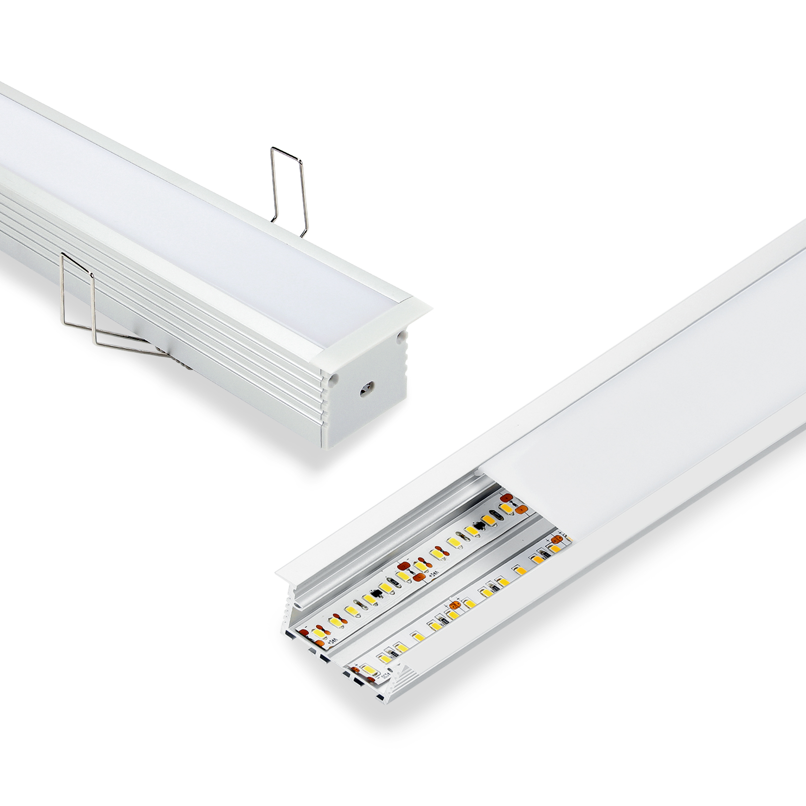 Wide led profile with spring mounting clips