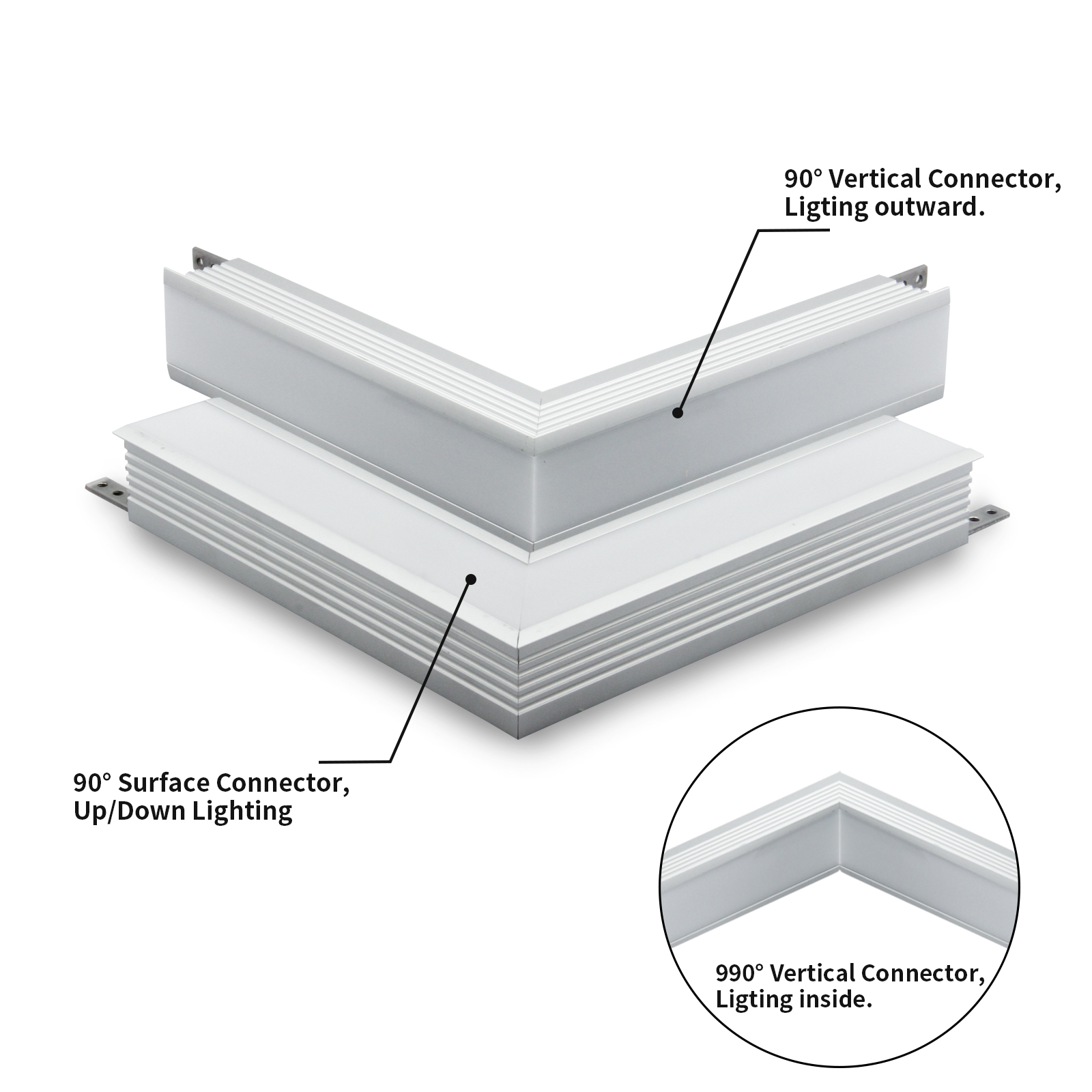 5.Connectors: Direct, 90 Degree, Vertical connectors