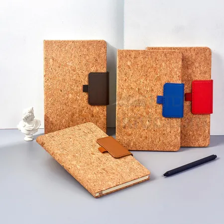 Cover:  cork coated with cardboard, round corner,a pocket on the front cover  . Inner: 80g cream paper, 80 lined sheets, round corner.ribbon marker,elastic penloop,magnet closure .