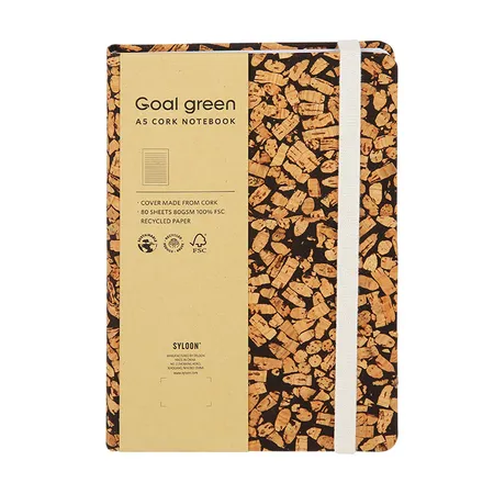 A5 CORK HARDCOVER NOTEBOOK, 140*205MM, CORK COVER, 80SHEETS 80GSM 100% FSC RECYCLED PAPER.