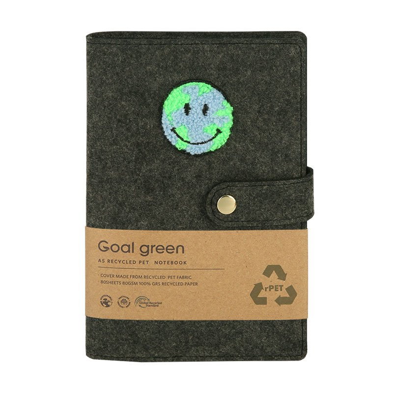 A5 FELT REFILLABLE NOTEBOOK, 135*205MM, RECYCLED PET FABRIC COVER, 80SHEETS 80GSM 100% GRS RECYCLED PAPER.