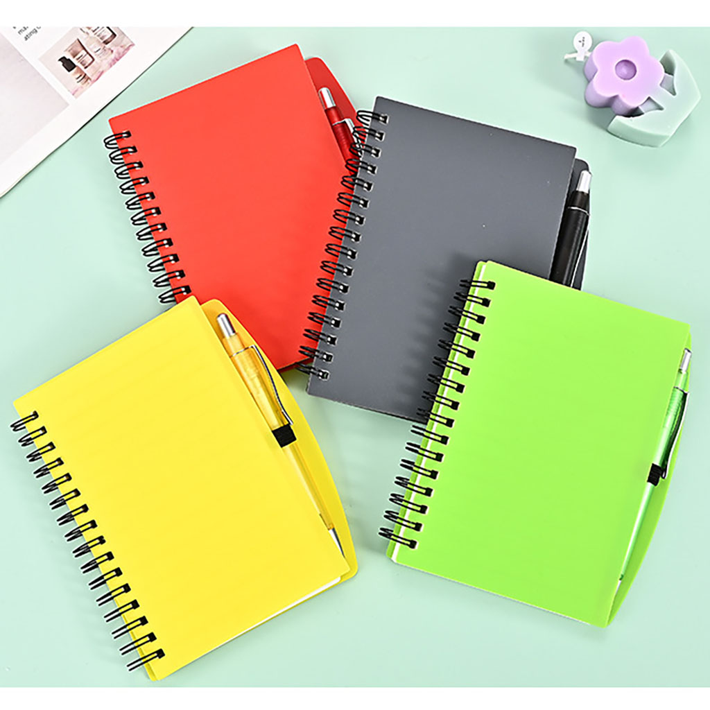 A5-sized PP Cover Spiral Notebook with Ballpoint Pen includes the following features :