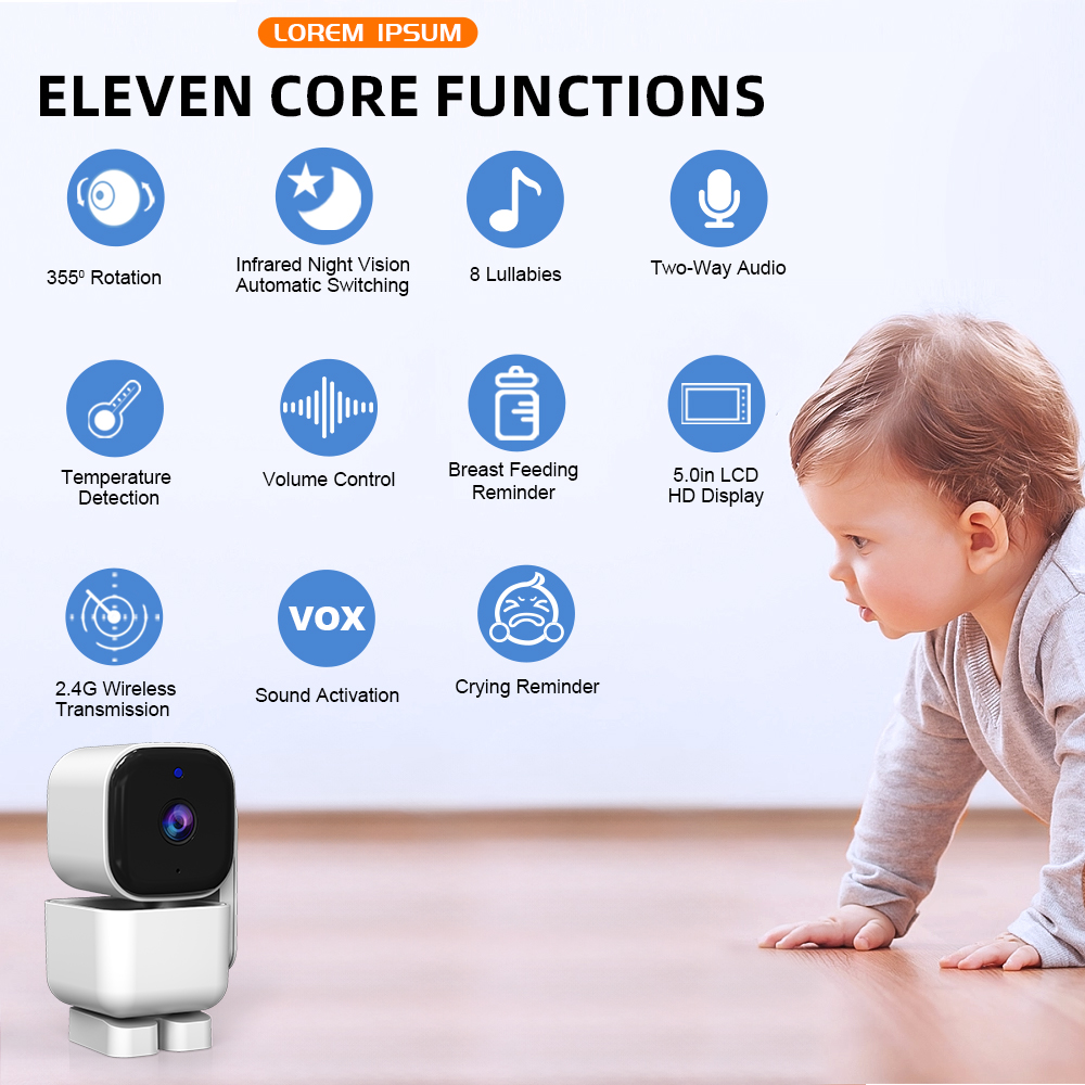 5-Inch IPS 1280*720P View Angle 65° 5000mAh lithium battery 2.4GHz Two-way Talkback