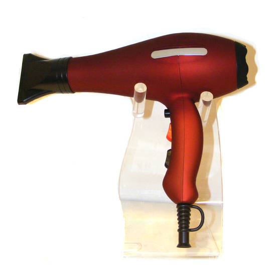 This hair dryer has a AC motor. Two switches control freeze, 2 speed and 3 heat settings. It is simple and easy to use and control.