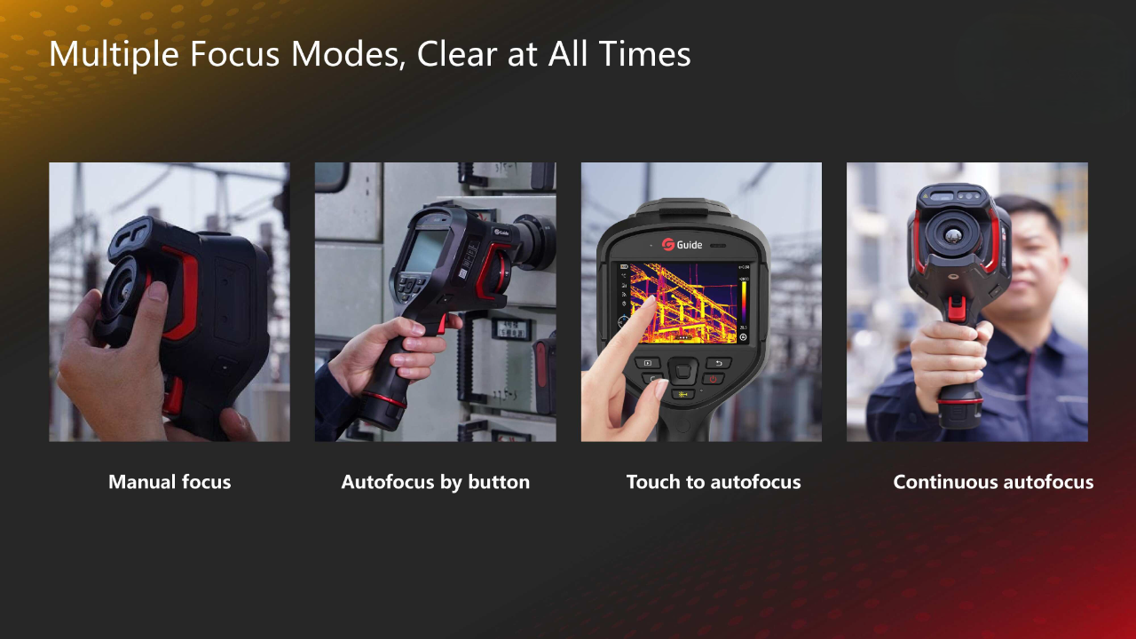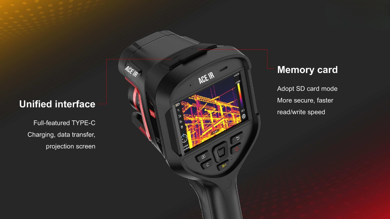 With a built-in self-developed high-sensitivity IR detector with a resolution of 480x360, a 8MP visible light camera, and 5 focusing modes, Hammer Series, the high-precision thermal camera designed specifically for the industrial field helps users intuitively view high-definition images and temperature details of the target, with the classic "hammer" shape. 30HZ Frame rate for fast and accurate access to more temperature data of moving targets, far beyond the same level of products.